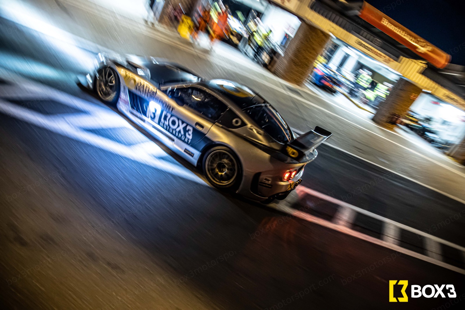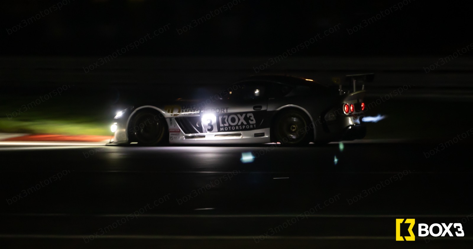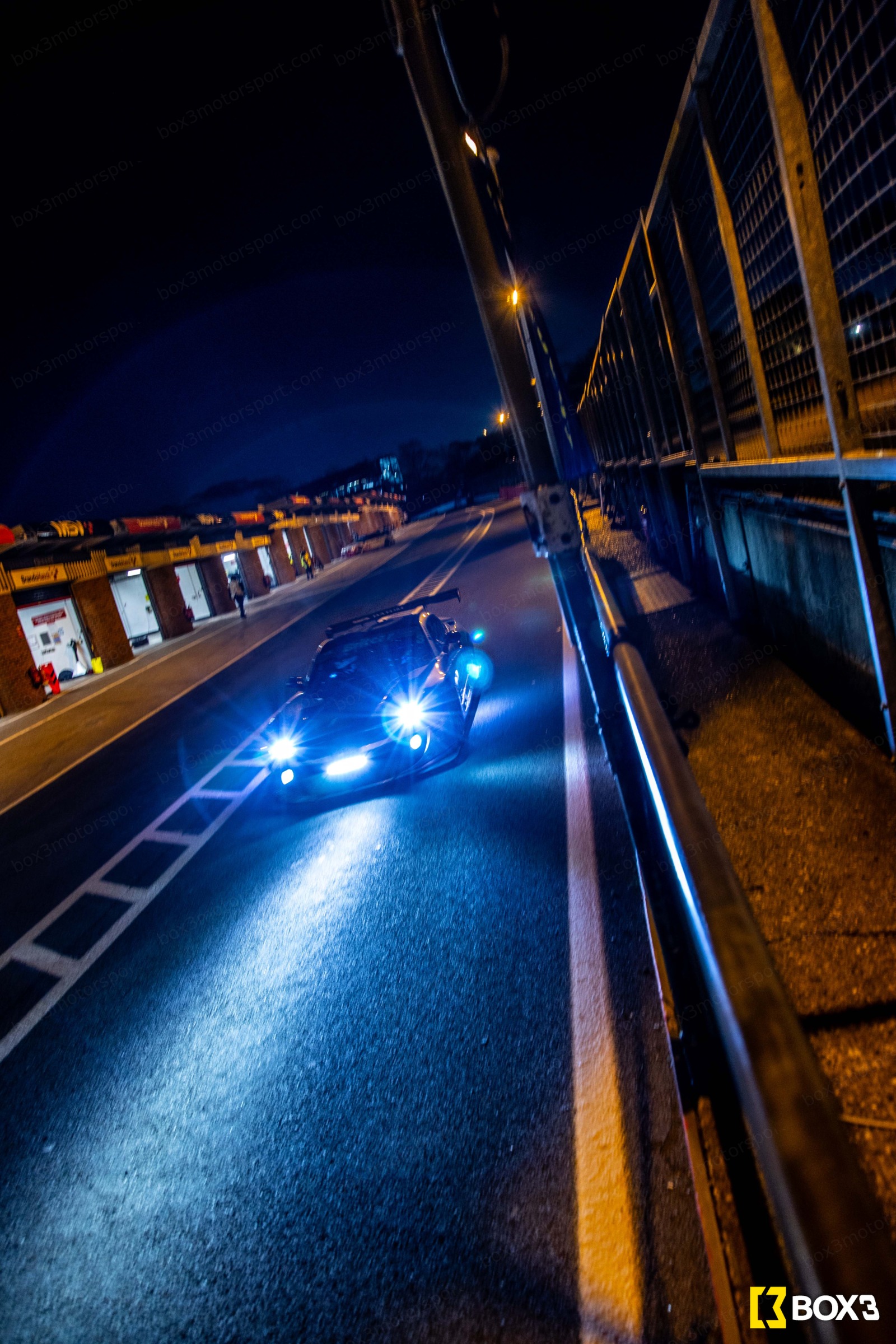 By the time we box, it’s P18 and counting, hope rebuilt, night alive with promise. The Box3 machine feels weightless through the stop, balance dialled in. Clean pit, driver change, and then Adriano bolts: headlights burning, intent absolute. What happens next? Breathtaking.