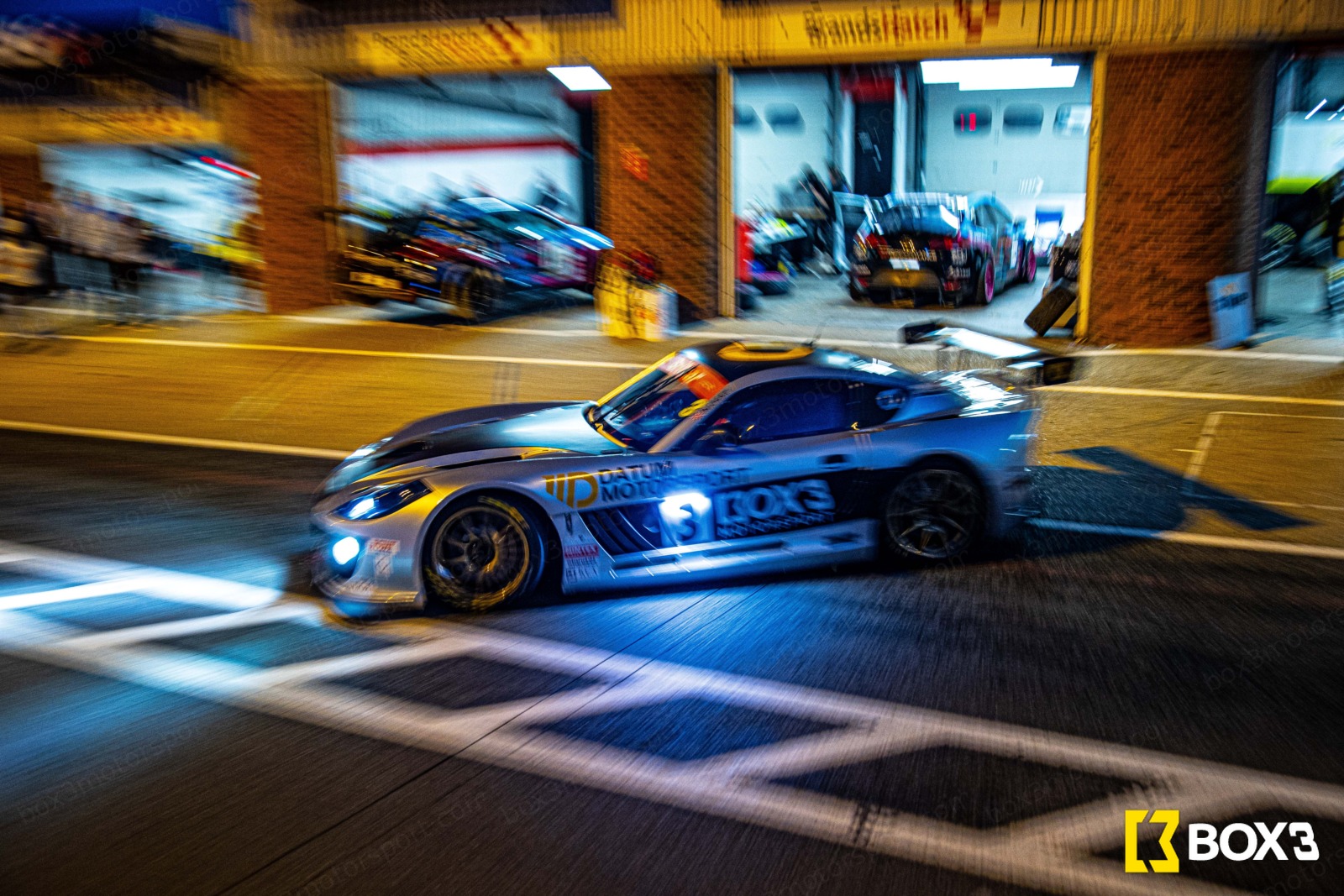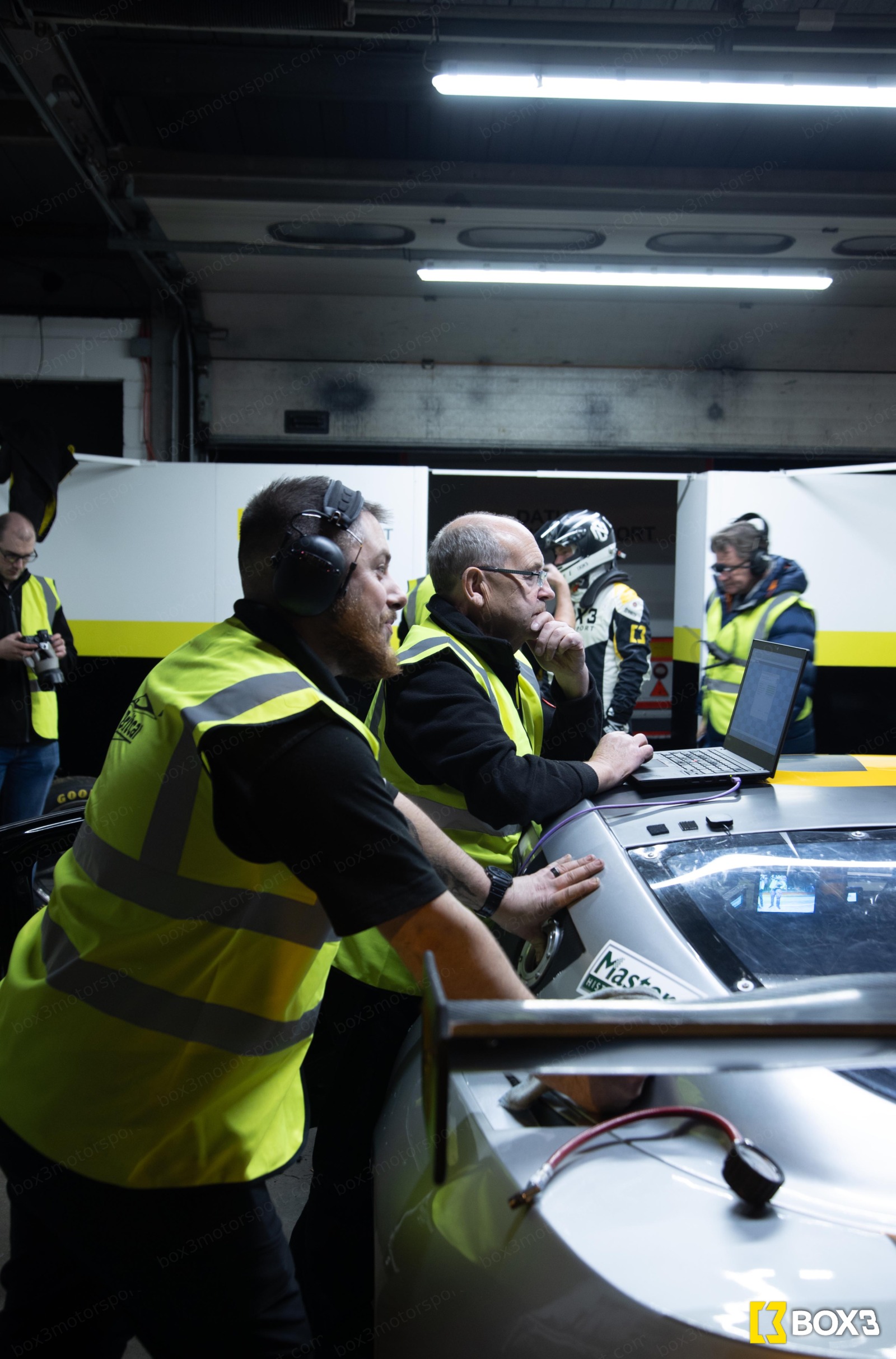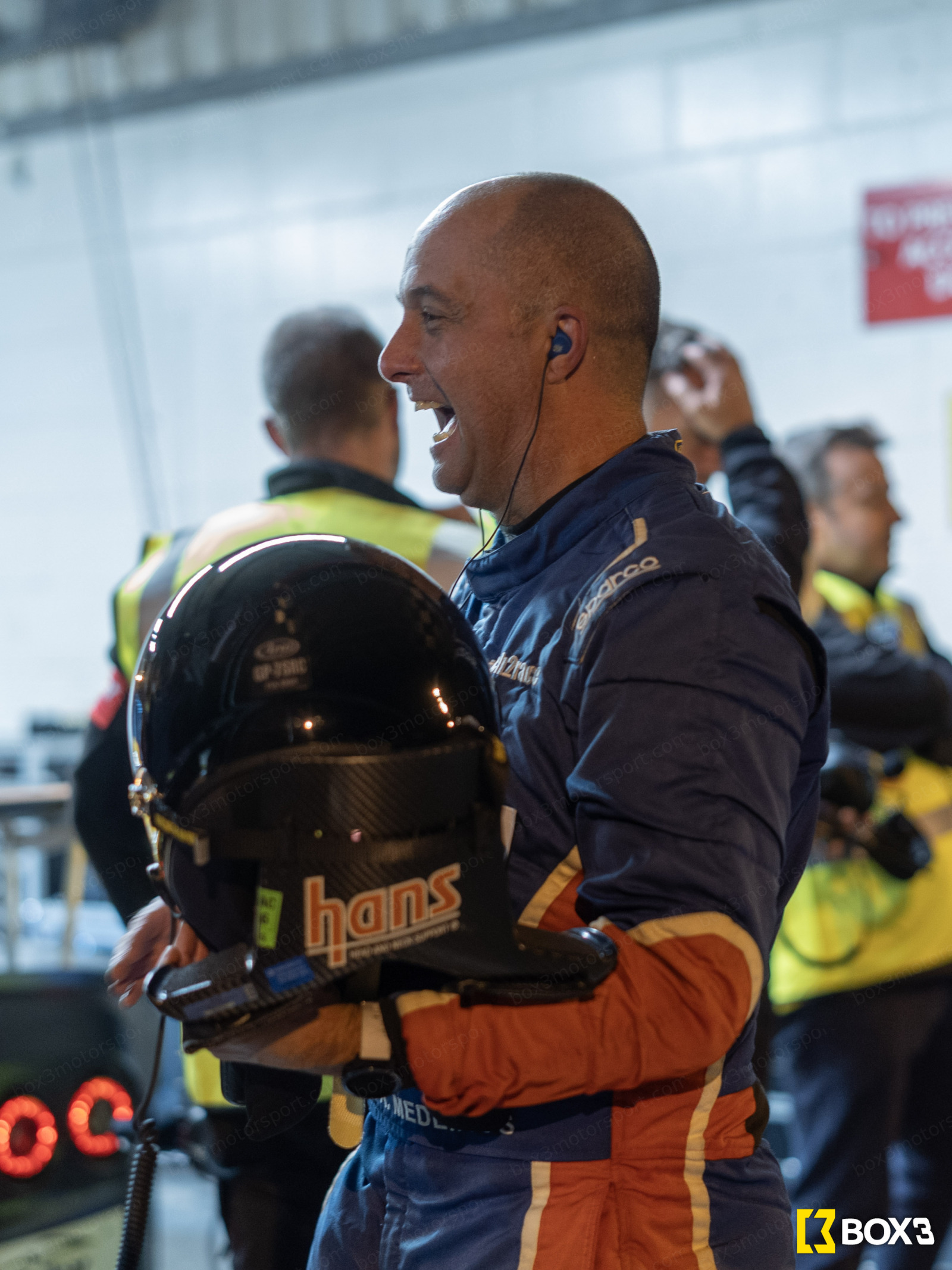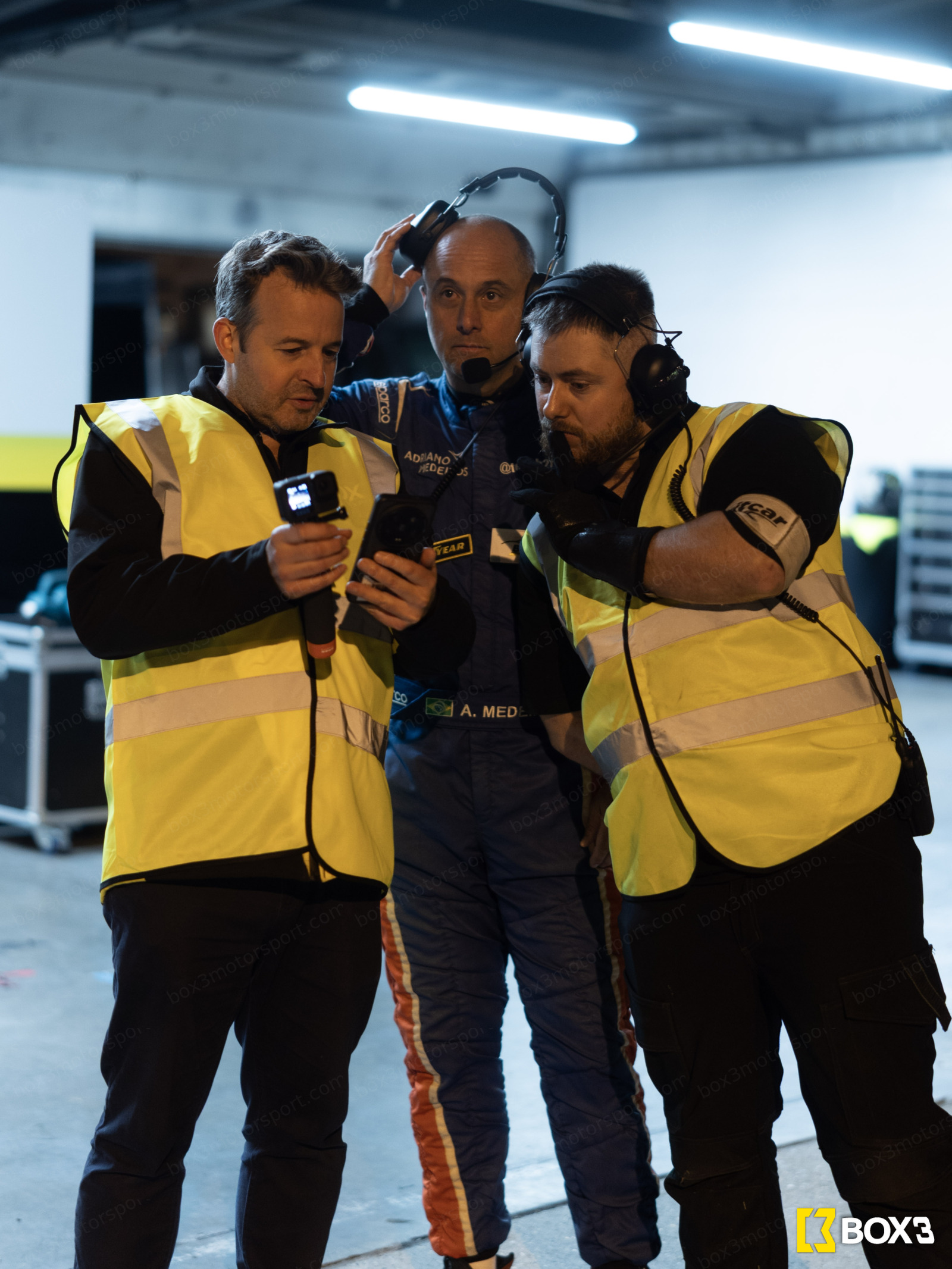 By the time we box, it’s P18 and counting, hope rebuilt, night alive with promise. The Box3 machine feels weightless through the stop, balance dialled in. Clean pit, driver change, and then Adriano bolts: headlights burning, intent absolute. What happens next? Breathtaking.