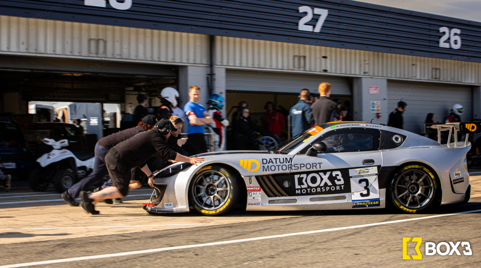 Box3 Motorsport stormed into Round 2 of the Britcar Endurance Championship at Silverstone’s full Grand Prix circuit, determined to build on their dramatic rookie debut. Drivers Nick Casey and Adriano Medeiros faced off against a packed grid, including rivals from the British and Dutch series, with Datum Motorsport supplying crucial engineering expertise.